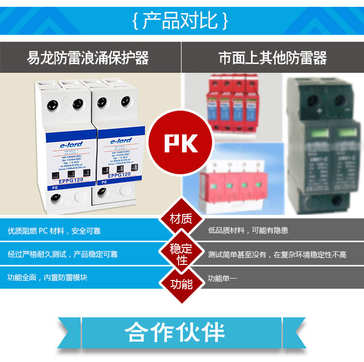 EPPG系列直流光伏電源浪涌保護器是由多個單片式限壓單元組成,廣泛應用于光伏直流1000V發(fā)電系統(tǒng)中,對太陽能電池板,匯流箱、直流配電柜及光伏逆變器等系統(tǒng)配套設備進行雷電感應浪涌防護,能有效防止由雷電感應波和線路浪涌沖擊所造成的設備損壞,最大程度的保證了光伏發(fā)電系統(tǒng)的穩(wěn)定性和可靠性,保護光伏系統(tǒng)穩(wěn)定可靠地運行。